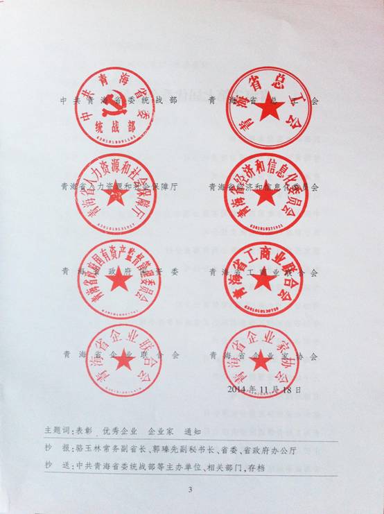 由省委統(tǒng)戰(zhàn)部、省總工會(huì)等8家單位聯(lián)合組織開展的"青海省優(yōu)秀企業(yè)、企業(yè)家"評(píng)選表彰活動(dòng),經(jīng)過(guò)多重、嚴(yán)格評(píng)審,青海省物產(chǎn)集團(tuán)總公司榮獲"青海省第七屆優(yōu)秀企業(yè)"稱號(hào)。集團(tuán)及所屬各公司將繼續(xù)發(fā)揚(yáng)成績(jī)、再接再厲,進(jìn)一步發(fā)揚(yáng)改革創(chuàng)新精神,不斷開拓市場(chǎng),攻堅(jiān)克難、腳踏實(shí)地、真抓實(shí)干,為實(shí)現(xiàn)物產(chǎn)集團(tuán)科學(xué)穩(wěn)健發(fā)展做出新貢獻(xiàn)。